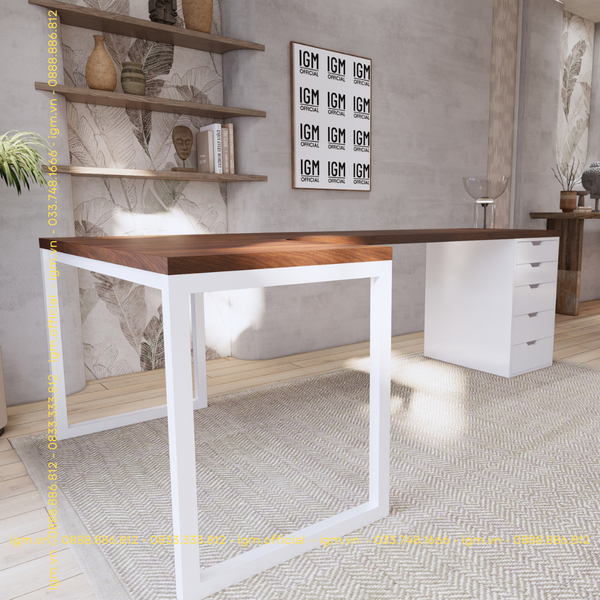 - Độ bền vượt trội và khả năng chịu lực cao: Một trong những lý do lớn nhất khiến bàn chân sắt được ưa chuộng chính là độ bền. Khung sắt được làm từ thép hộp, thép vuông hoặc thép dày, có khả năng chịu tải nặng rất tốt. Dù bạn đặt máy tính bàn, nhiều màn hình, sách vở hay phụ kiện, bàn vẫn vững vàng và không bị cong vênh như một số loại bàn gỗ công nghiệp mỏng
