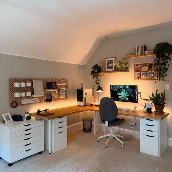 Ngoài ra, không gian gọn gàng còn giúp bạn dễ dàng kết hợp các yếu tố thư giãn như cây xanh, ánh sáng tự nhiên hay vật dụng trang trí tối giản. Những chi tiết này góp phần tạo nên môi trường làm việc tích cực, giảm căng thẳng và duy trì trạng thái tinh thần ổn định trong suốt ngày dài. Nó sẽ giúp bạn hạn chế cảm giác quá tải do môi trường lộn xộn và tạo cảm giác thư thái và chủ động trong công việc.