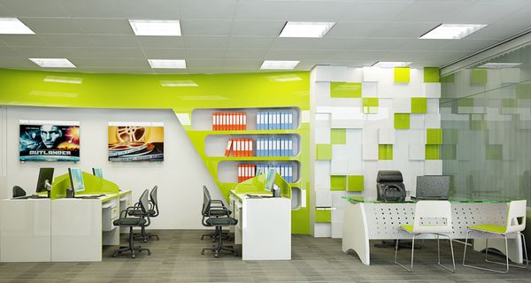 - Xanh lá cây thường được xem là màu sắc mang lại sự thư giãn và cân bằng. Đưa gam màu này vào không gian văn phòng giúp nhân viên cảm thấy dễ chịu hơn, đặc biệt phù hợp cho những công việc cần sự sáng tạo liên tục. Sự hiện diện của cây xanh hoặc các chi tiết decor màu xanh lá cũng giúp môi trường làm việc thân thiện và gần gũi với thiên nhiên hơn.