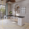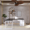 Bàn IKEA chữ L 1 Hộc tủ 5 ngăn trắng (Mặt bàn MDF - Màu đen)