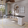 Bàn IKEA Chữ L 1 Hộc Tủ 5 Ngăn Trắng ( Mặt Bàn Màu Đen)