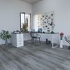 Bàn IKEA chữ L 1 Hộc tủ 5 ngăn trắng (Mặt bàn MDF - Màu Xám)