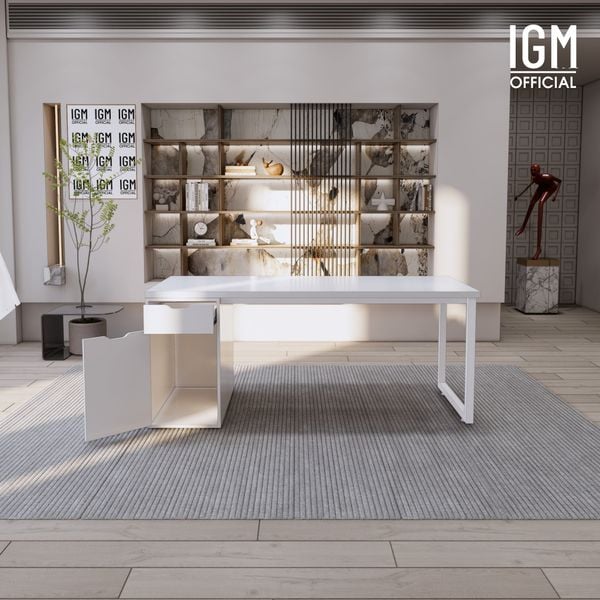 - Bàn làm việc một tủ kết hợp ngăn kéo và cánh tủ mở nằm trong bộ sưu tập Bàn IKEA của nhà IGM, được ứng dụng chống trầy xước của tủ rất tốt, mang lại cảm giác yên tâm cho người sử dụng.