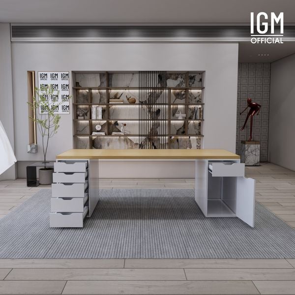- Bàn IKEA IGM 2 hộc tủ: 1 tủ 5 ngăn kéo - 1 tủ 1 ngăn kéo 1 cánh nằm trong bộ sưu tập Bàn IKEA của nhà IGM, được ứng dụng chống trầy xước của tủ rất tốt, mang lại cảm giác yên tâm cho người sử dụng.