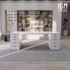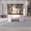 - Bàn làm việc IKEA gồm 2 hộc tủ gồm mỗi tủ 5 ngăn kéo giúp người dùng tối ưu được không gian để làm việc và nơi để đựng đồ dùng cá nhân nhưng vẫn giữ được thiết kế vẫn trẻ trung, hiện đại nhưng vẫn nhã nhặn.